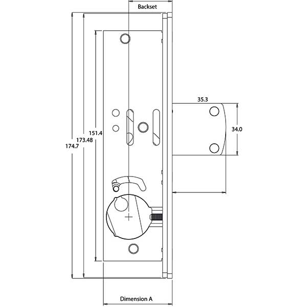 Long throw barbolt deadlock to suit mortice cylinder 31/32in backset