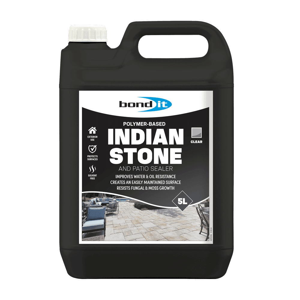 Bond It Indian Stone Sealer is a solvent-free, advanced Fluoro polymer-based formulation designed to protect patios, particularly high-quality natural stone, by providing durable protection against water and oil penetration without altering the appearance or colour of the surface. It creates an easy-to-clean surface and helps prevent fungal and moss growth, ensuring long-lasting protection. This product is ideal for natural stones such as Indian sandstone, Yorkstone, limestone, and sandstone, and is particularly effective for protecting patios from water ingress and oil stains, including fat spills from barbecues. It is ready to use, requires no dilution, and should be applied as a single coat using a brush, roller, or squeegee. After 3-4 hours of drying time, the area can be trafficked.