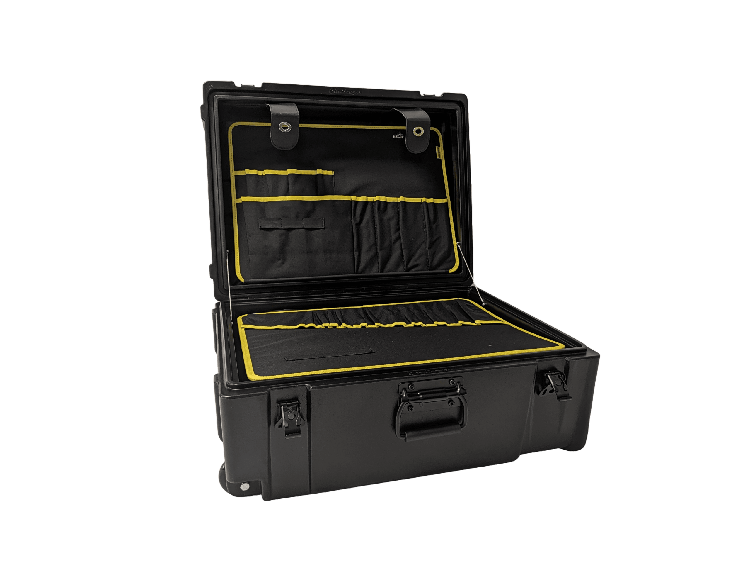 The Challenger ‘Guardian’ consists of a robust, hard-shelled case with wheels and a heavy duty extendable handle. The interior features 2 hinged pouches in the lid for smaller items. Reliable latches and an ergonomic handle further assert its readiness for any challenge. Embrace the confidence that comes with our limited lifetime guarantee – this Tool Case isn’t just made in the UK; it’s made to last.