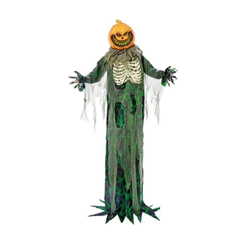 HB238666 1.9m Battery Operated Lit Animated Grinning Pumpkin Man with Sound Affects