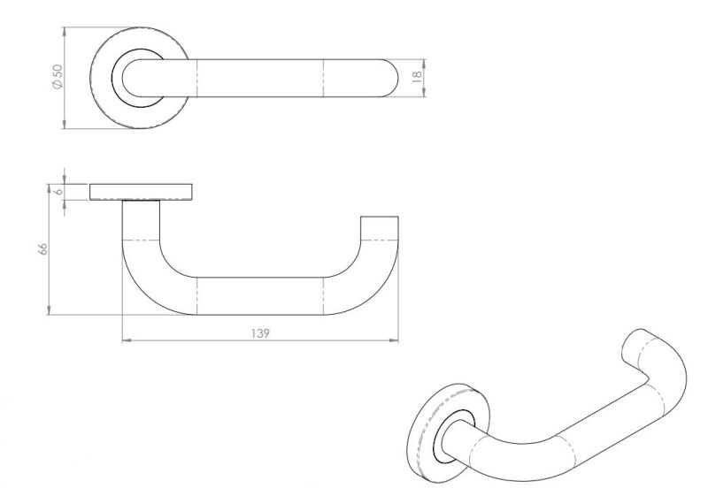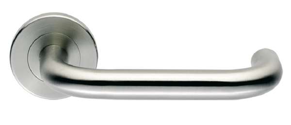 Lever On Screw On Rose Satin Stainless Steel. 19mm Diameter Lever On Round Sprung Screw On 50 X 6mm Rose. Grade 4 Category of Use. Grade 7 Durability. Grade 316 Stainless Steel. Dimensional Sizes Meet The Requirements Of BS EN 8300.