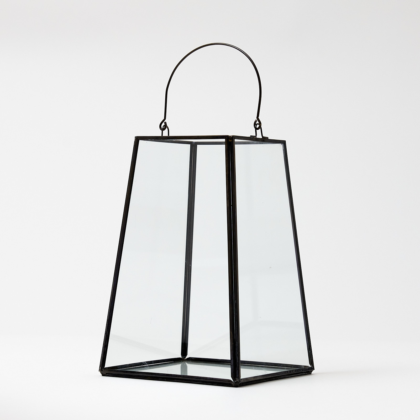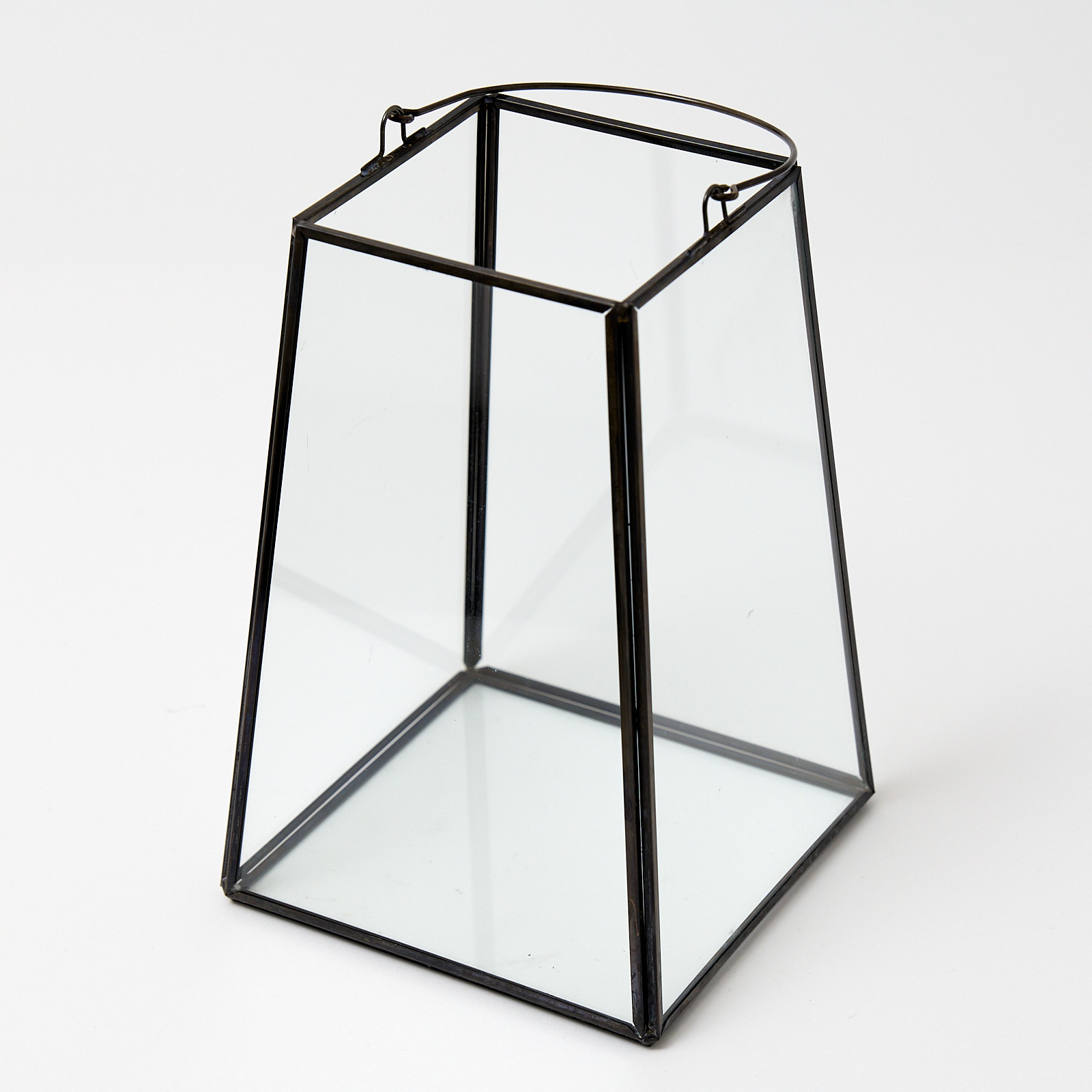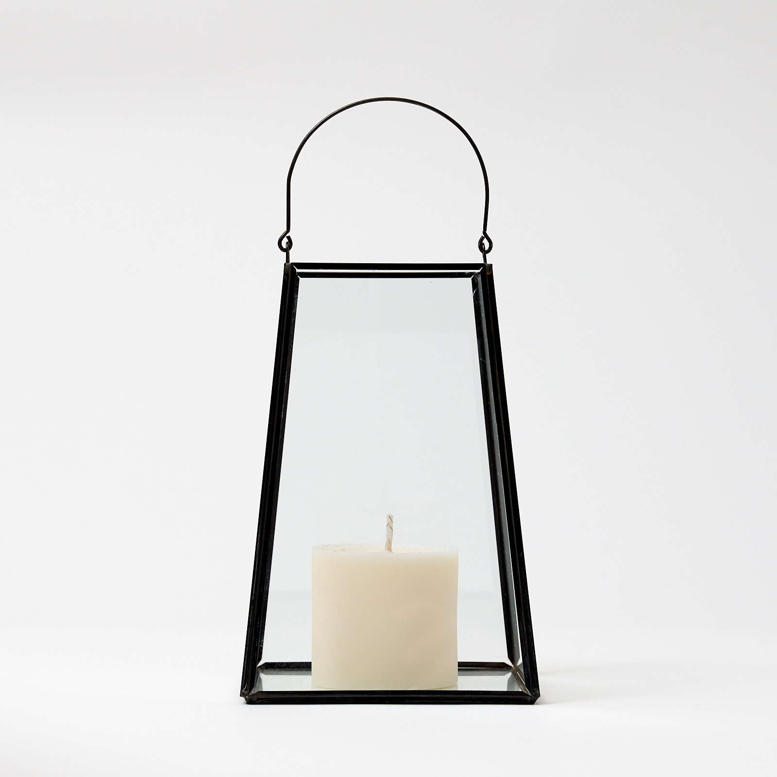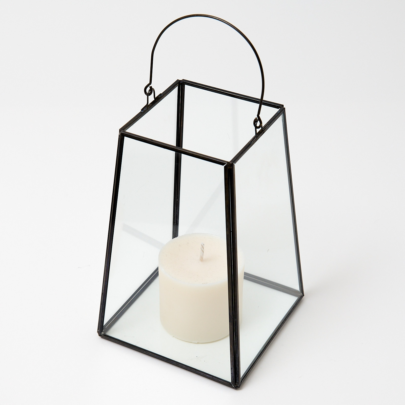 This medium black glass lantern combines a sleek square frame with sturdy metal construction. Measuring 20cm tall, it’s ideal for tea lights or small candles, casting a warm, ambient glow in any setting. It’s well-suited for curated home accessory collections and simple to manage in wholesale quantities.