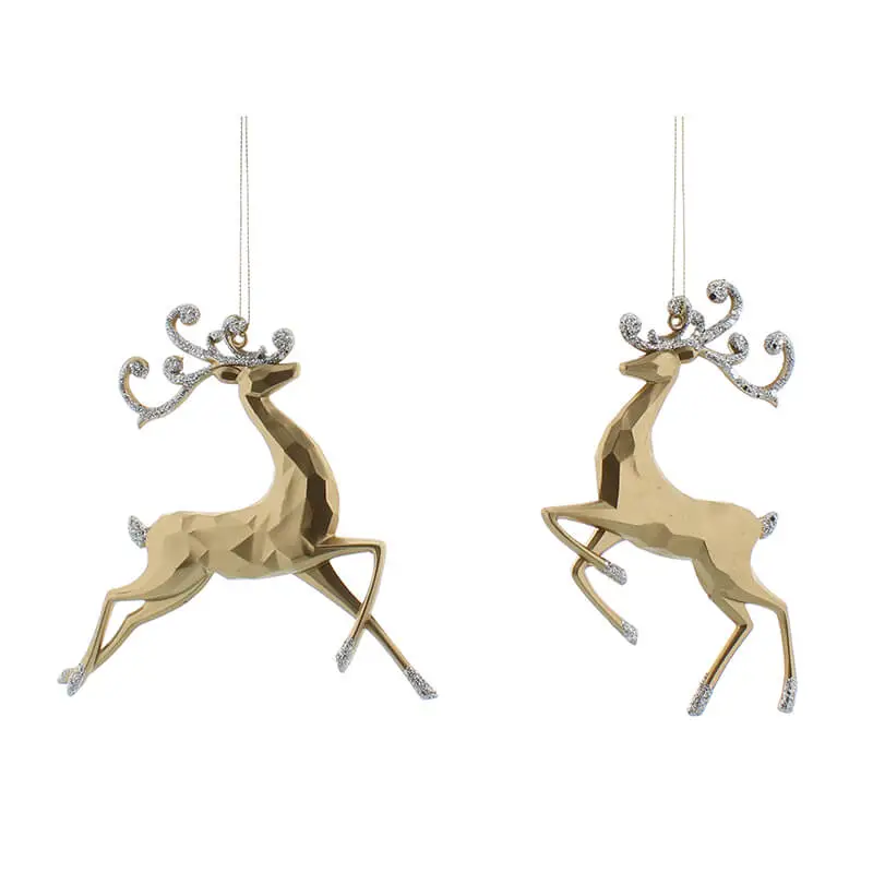 Make your holiday season sparkle with this set of two 15cm matte gold acrylic reindeers. These festive decorations are perfect for adding a touch of glitz and glamour to your home. The classic reindeer shape is timeless and eye-catching, while the acrylic material is durable and easy to clean. Whether you’re decorating for a special occasion or just want to add a bit of holiday cheer, these reindeers are sure to be a hit.