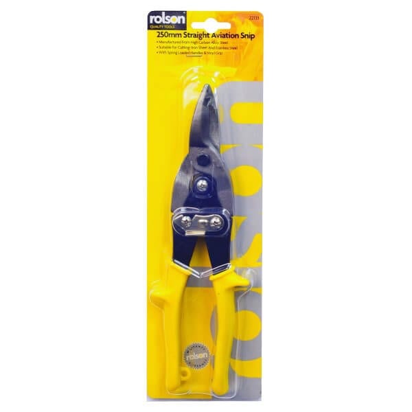 250mm (10″) Aviation Tin Snips Straight cutting tin snips with spring loaded handles and vinyl grips