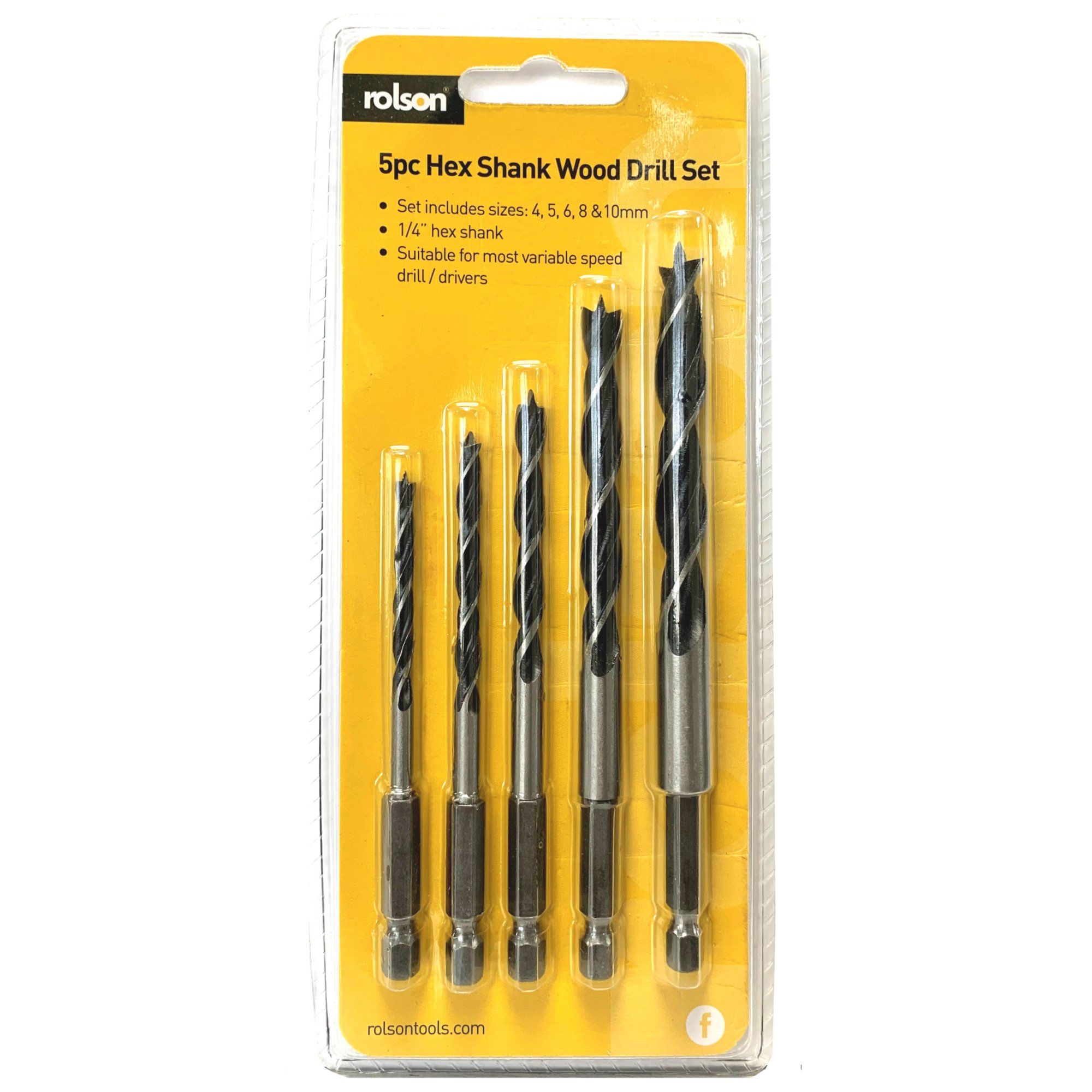 Rolson 5pc Hex Shank Wood Drill Bit Set 48532