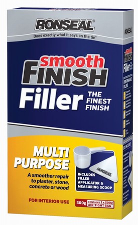 Our Multi Purpose Filler Powder can be used on indoor plaster, stone, concrete and wood. So pretty much anything. You’ll be able to fill holes up to 40mm, and it’ll leave a tough repair that wont shrink or crack. You also get a measuring scoop, and our filler applicator.
