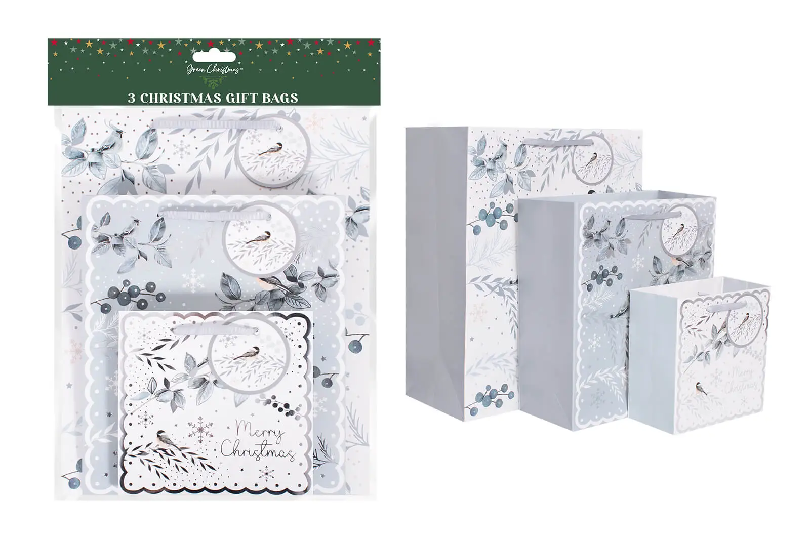 WINTER BIRD FOIL GIFT BAGS PACK OF 3